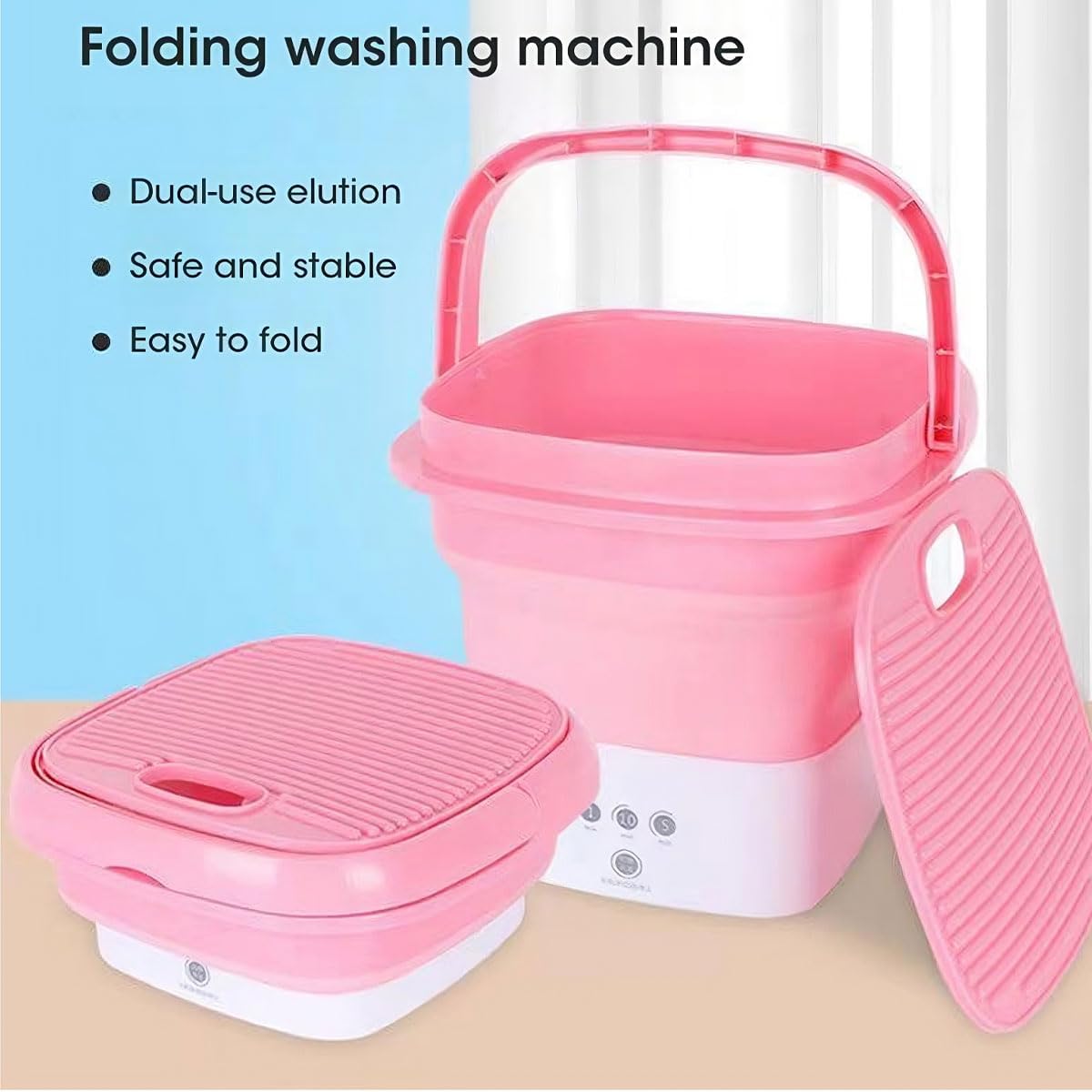 Folding Small Automatic Washing Machine With Touch Screen Portable Washing Machine Small Statur Big Intelligence Mini Foldable Washing Machine This mini compact washing machine is an ideal choice for doing laundry in compact and limited space environments such as dorms, condos, motor homes, camping and more. The easy operation system allows you to do laundry in three easy steps simply put in your load of clothes, fill with water, then set the timer and start washing.