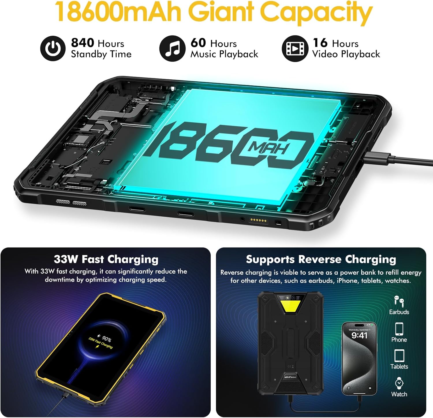 Up to 16GB RAM, 256GB ROM: Armor Pad 2 rugged tablet supports 8GB of RAM, along with 8GB of virtual RAM and 256GB of internal storage with 2TB expansion.The Helio G99 chipset of Armor Pad 2 featured 8-core CPU clocked at up to 2.2 GHz frequency, 6nm production process, along with ARM Mali-G57 MC2 GPU, handles resource-intensive apps and games easily and boosts the performance of multimedia.