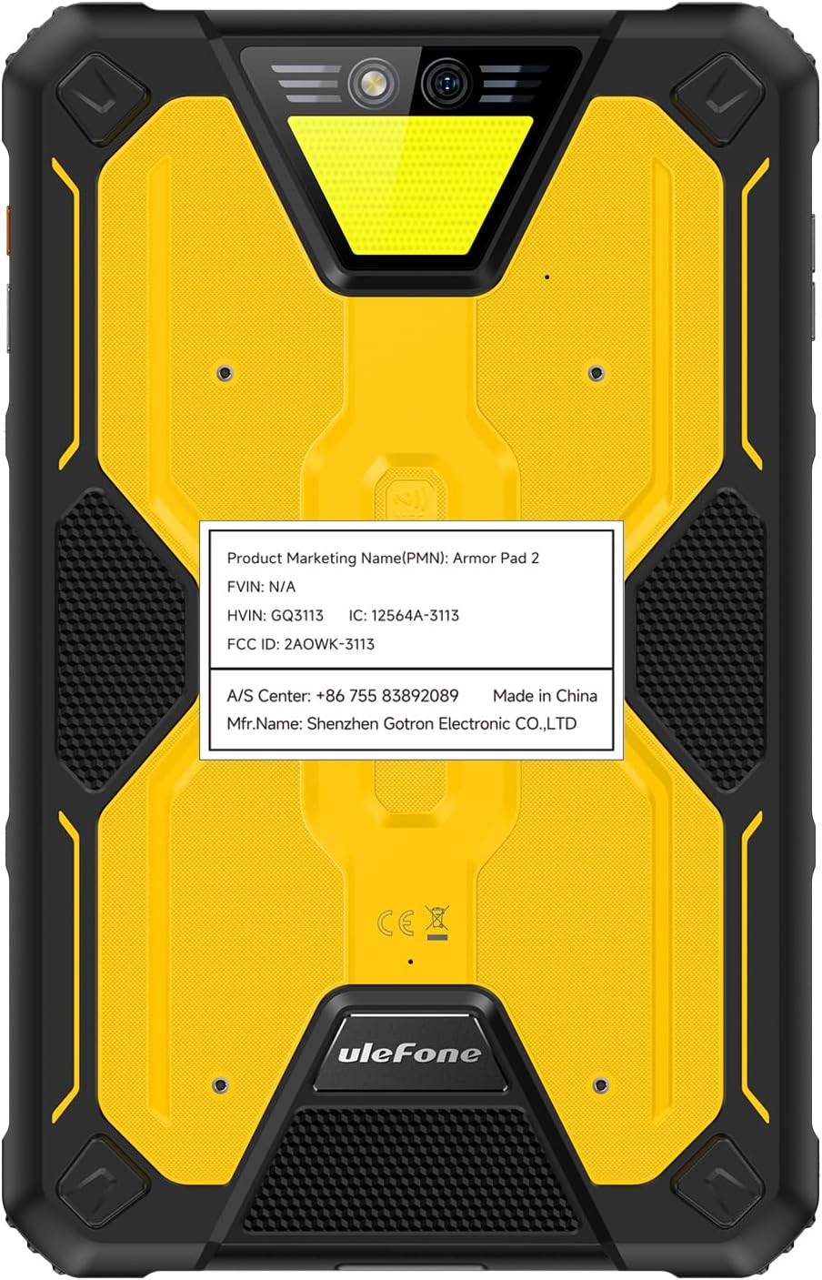 Ulefone Armor Pad 2 11 inch 2K FHD+ Screen Rugged Tablet, 18600mAh, Camping Light , Octa Core 16GB + 256GB Android 13, 48MP Rear Camera, 4G Dual SIM IP68 Waterproof Android Tablet GPS NFC-Yellow
