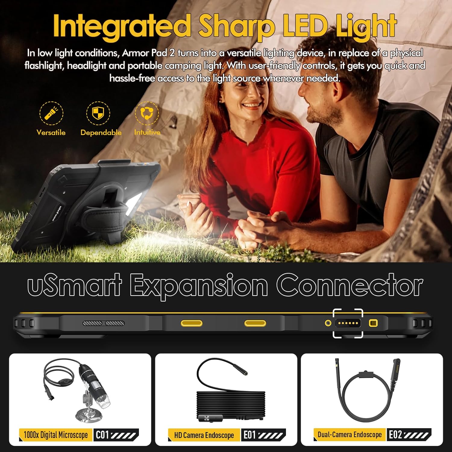Integrated Sharp LED Light: In low light conditions, Armor Pad 2 turns into a versatile lighting device, in replace of a physical flashlight, headlight and portable camping light. With user-friendly controls, it gets you quick and hassle-free access to the light source whenever needed. Runs Latest Android 13 OS.