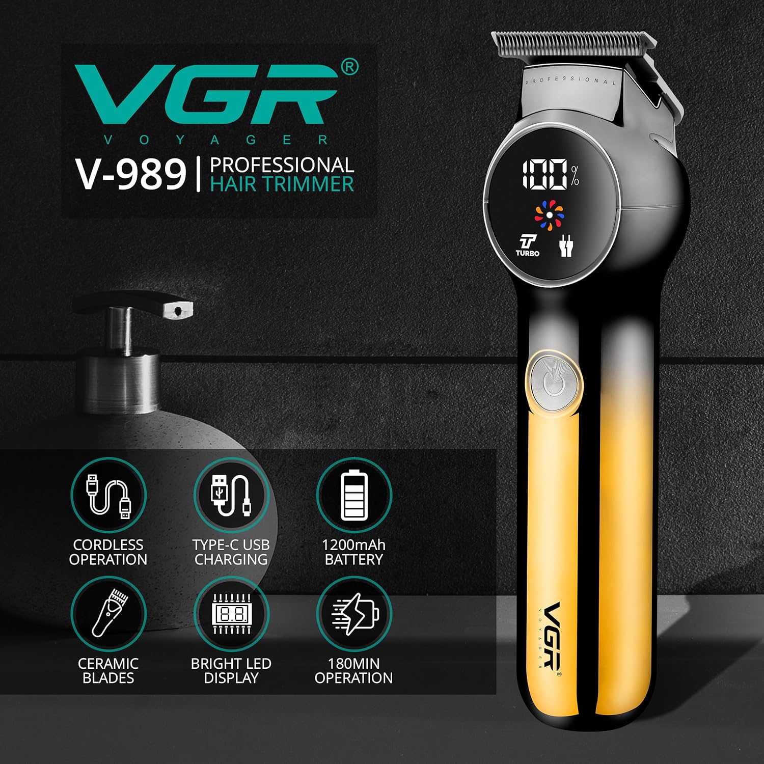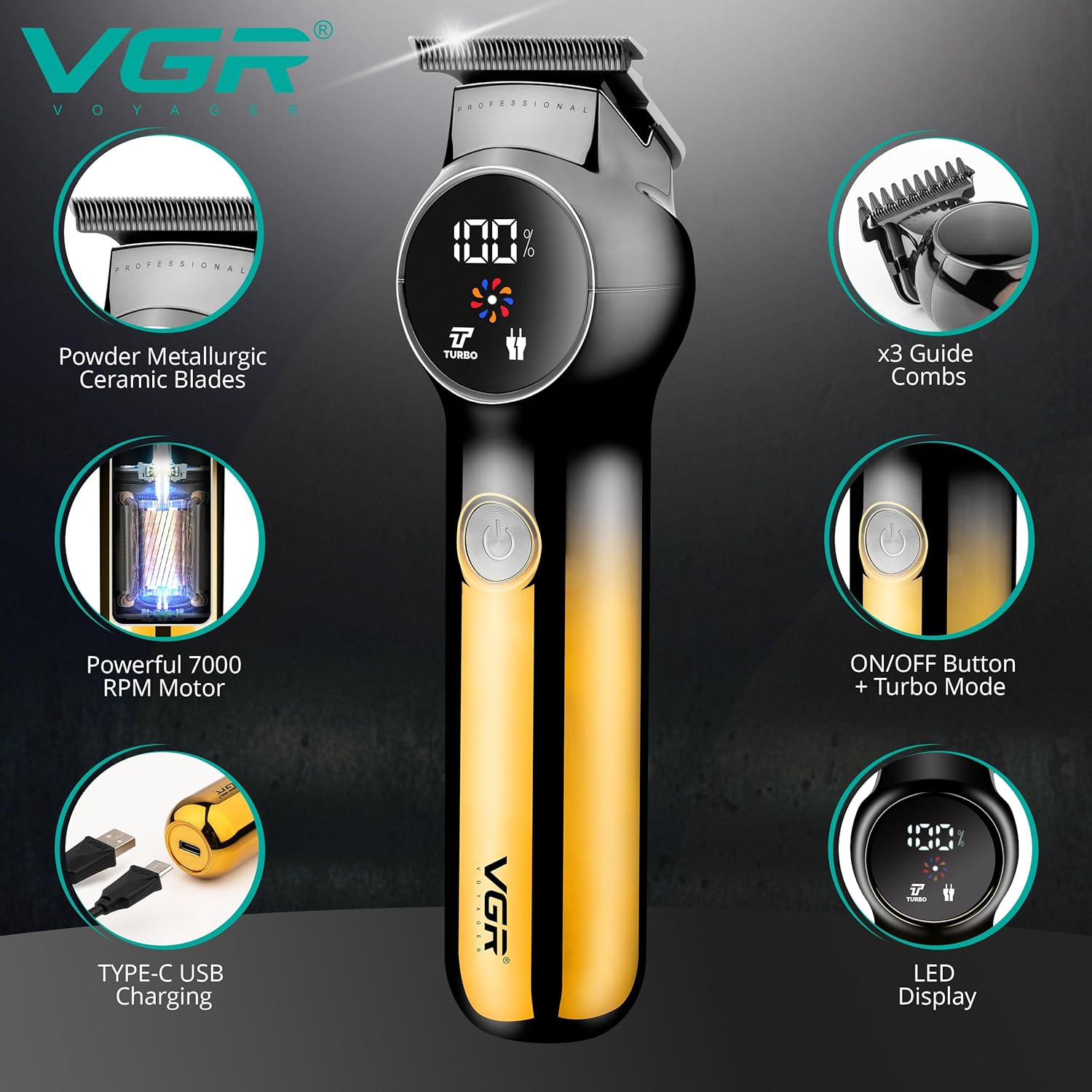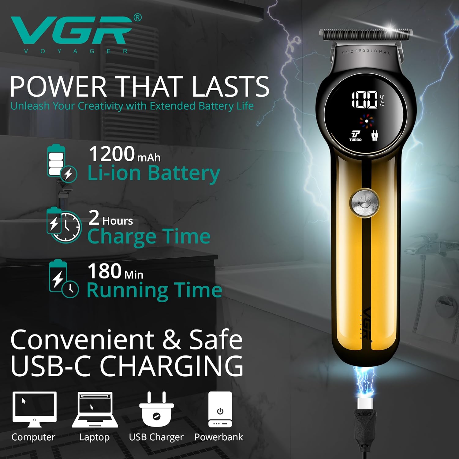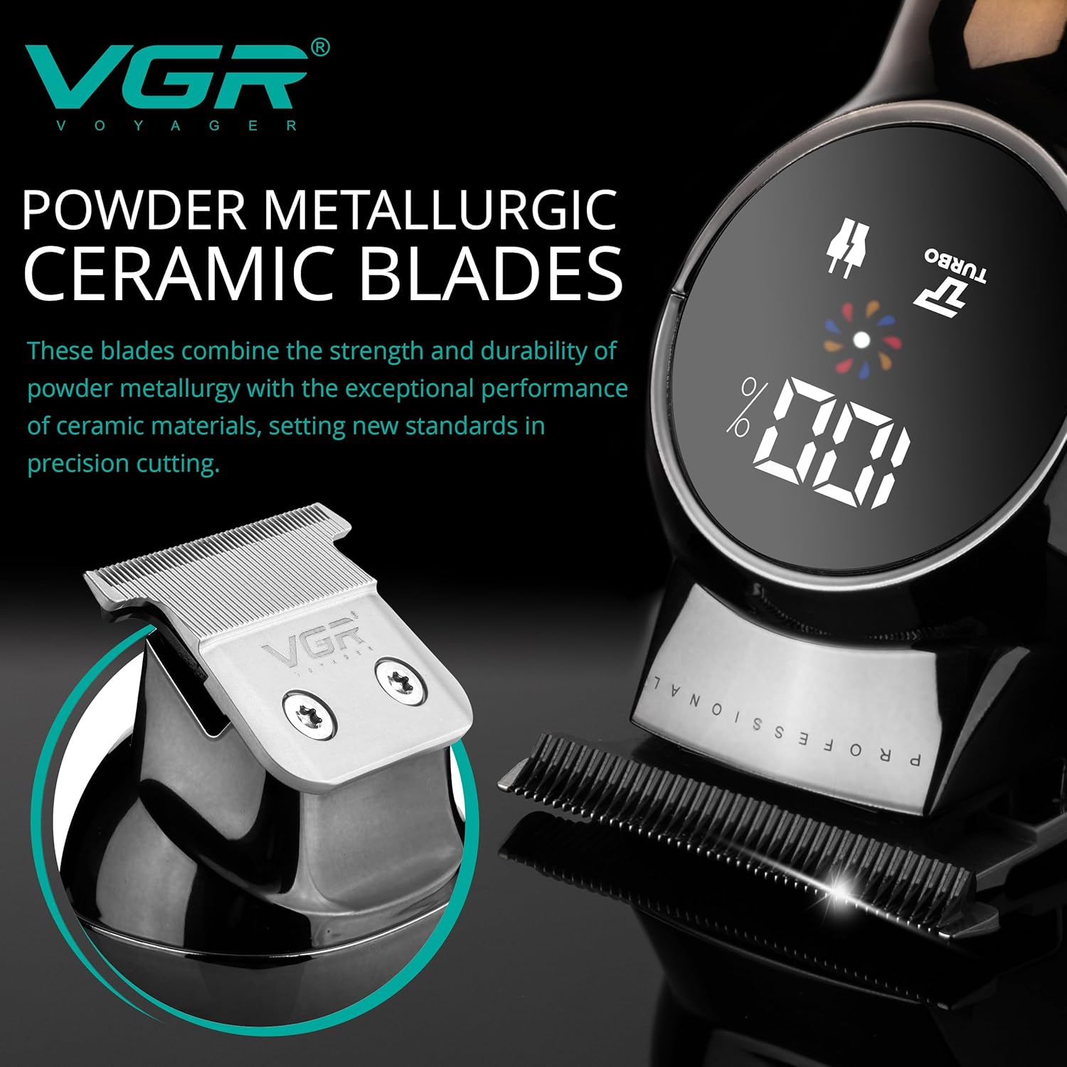 VGR Men’s Beard Trimmer Rechargeable with Turbo Mode – Professional Ceramic Blades – Cordless Hair Clippers – Electric Shaver Razor