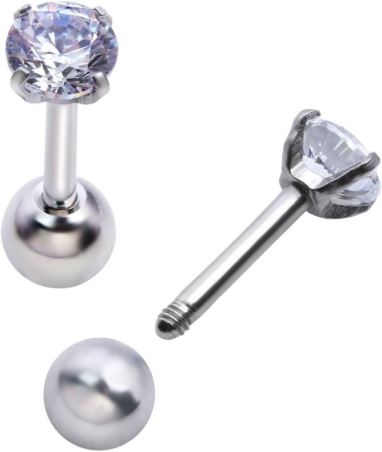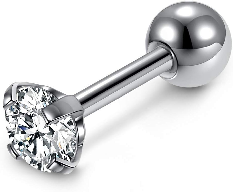 Zysta Mini Cubic Zirconia 16G Earring Studs Round Rhinestone Diamond Stainless Steel Post Back Ball Screw Men Women Boy Girl Nose Helix Cartilage Ear Lobe Small Cute Piercing Jewelry